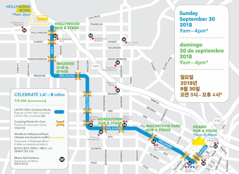 Street closures for Celebrate LA!: LA Phil 100 x CicLAvia: